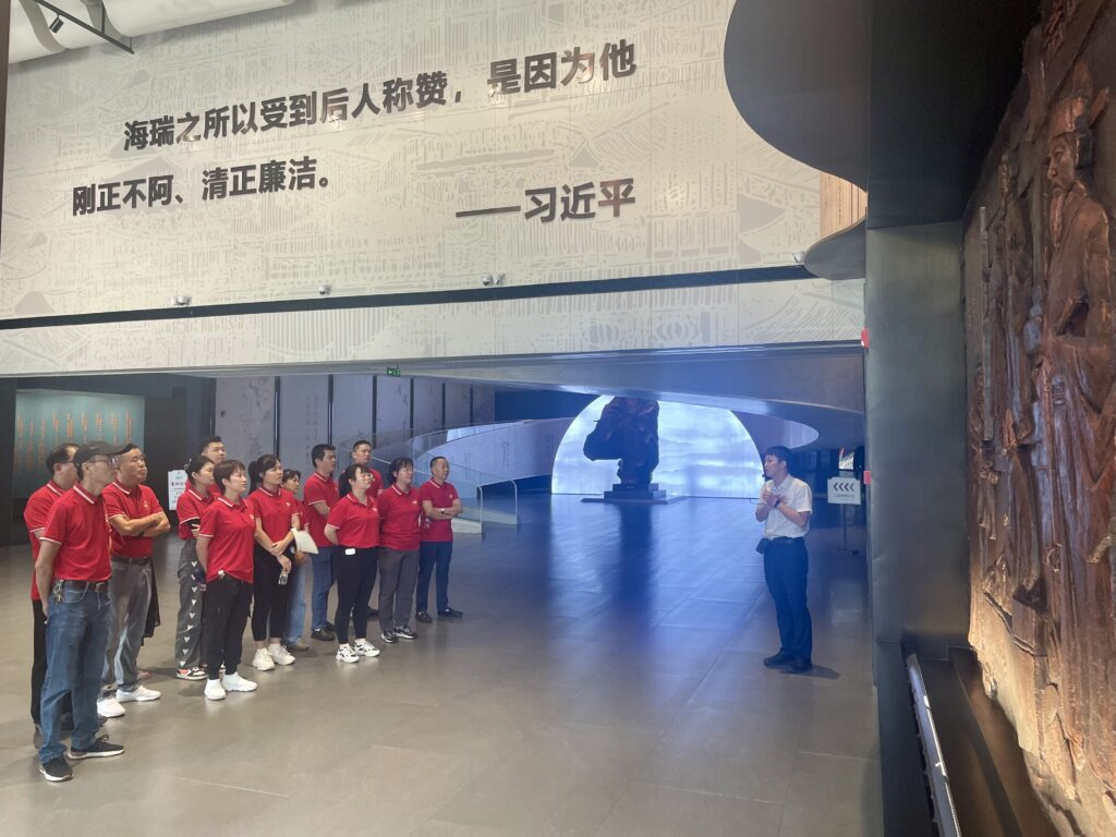 活动当天,党员们身着整齐的服装,满怀敬意地步入海瑞文化公园,参观了海瑞纪念馆。在馆内,他们观看了海瑞生平的介绍和清廉事迹的展板,深入了解了这位明代著名清官的廉洁奉公、刚正不阿的品格。
