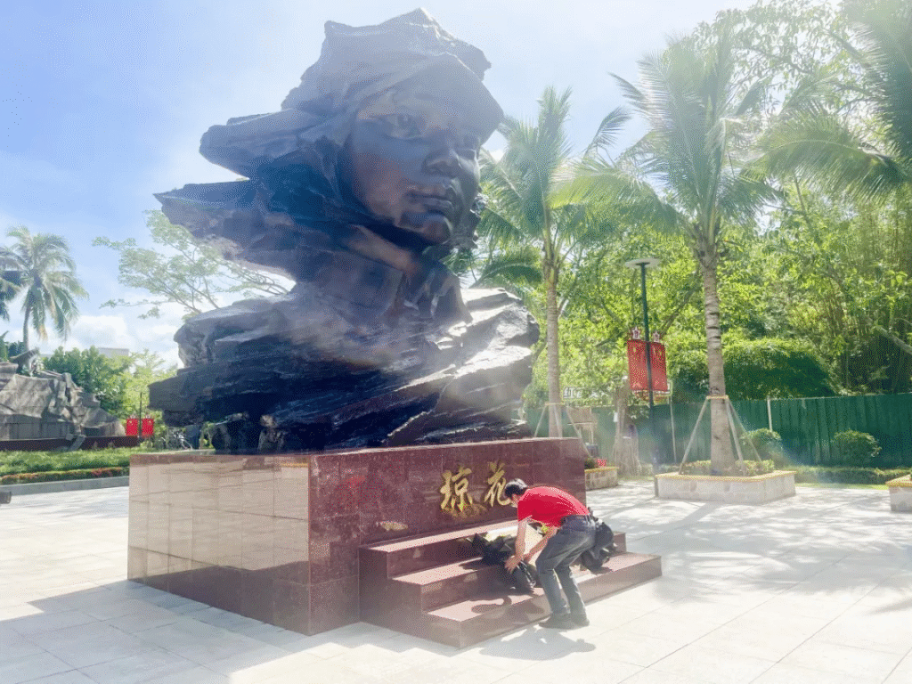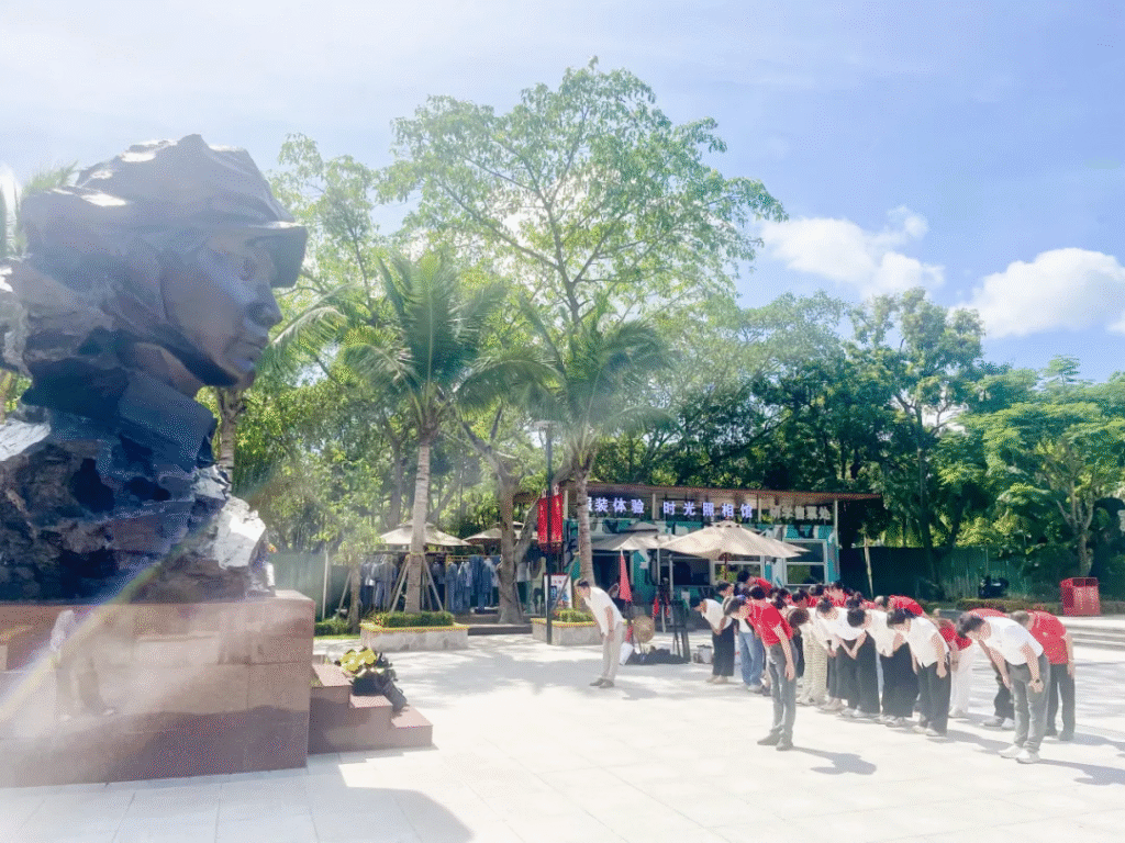 活动伊始,全体人员整齐列队,怀着无比崇敬的心情,缓步来到红色娘子军纪念碑前。纪念碑庄严肃穆,仿佛在诉说着那段波澜壮阔的历史。党员代表迈着坚定的步伐,将手中的鲜花轻轻放在纪念碑前,每一朵鲜花都承载着对革命先烈的深切缅怀和崇高敬意。随后,全体人员向纪念碑深深鞠躬,静默致哀,表达对红色娘子军战士们英勇事迹的铭记和对她们无私奉献精神的敬仰。